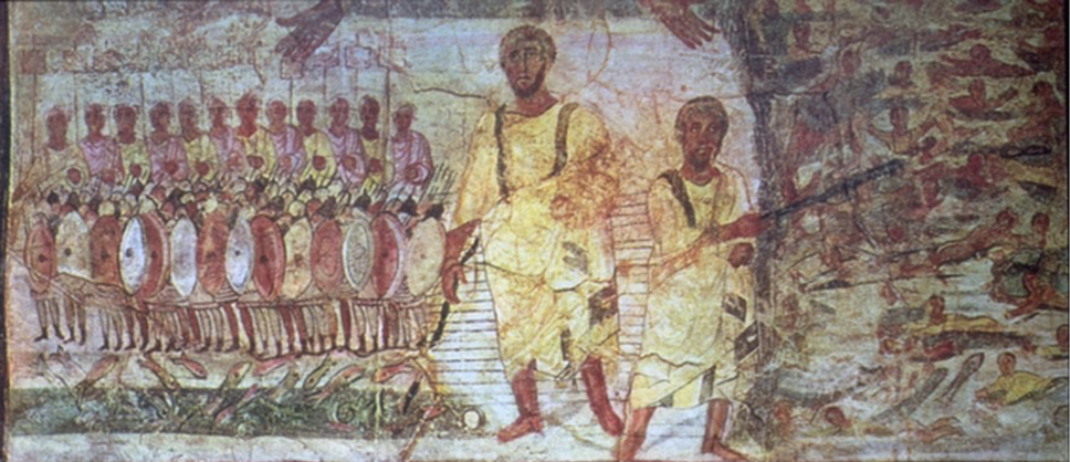 Moses leading his People thru the Red Sea. Fresco from Dura-Europos Synagogue 250 AD
