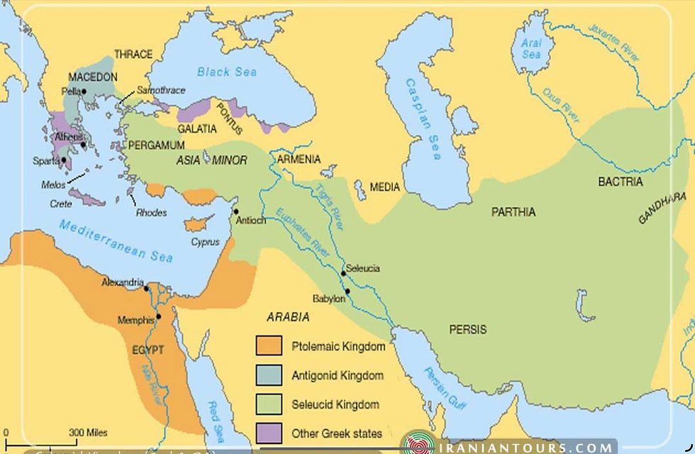 The Carving up of Alexander the Great's empire after his untimely Death in 332 BC. For Centuries, the Ptolemy and Seleucid fought over and destroyed the Levant and Palestine