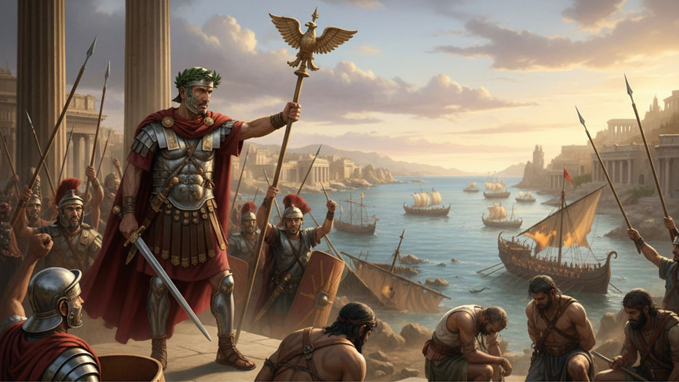 Gnaeus Pompeius Magnus (106 - 48 BC) defeated the Silician Pirates, conquered the East but was defeated by Julius Caesar in the following Civil War and assassinated in Egypt